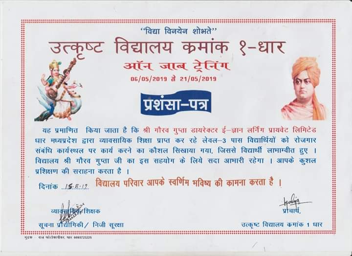 We Are Registered Employer Under Employment Exchange Madhya Pradesh » View Certificate »